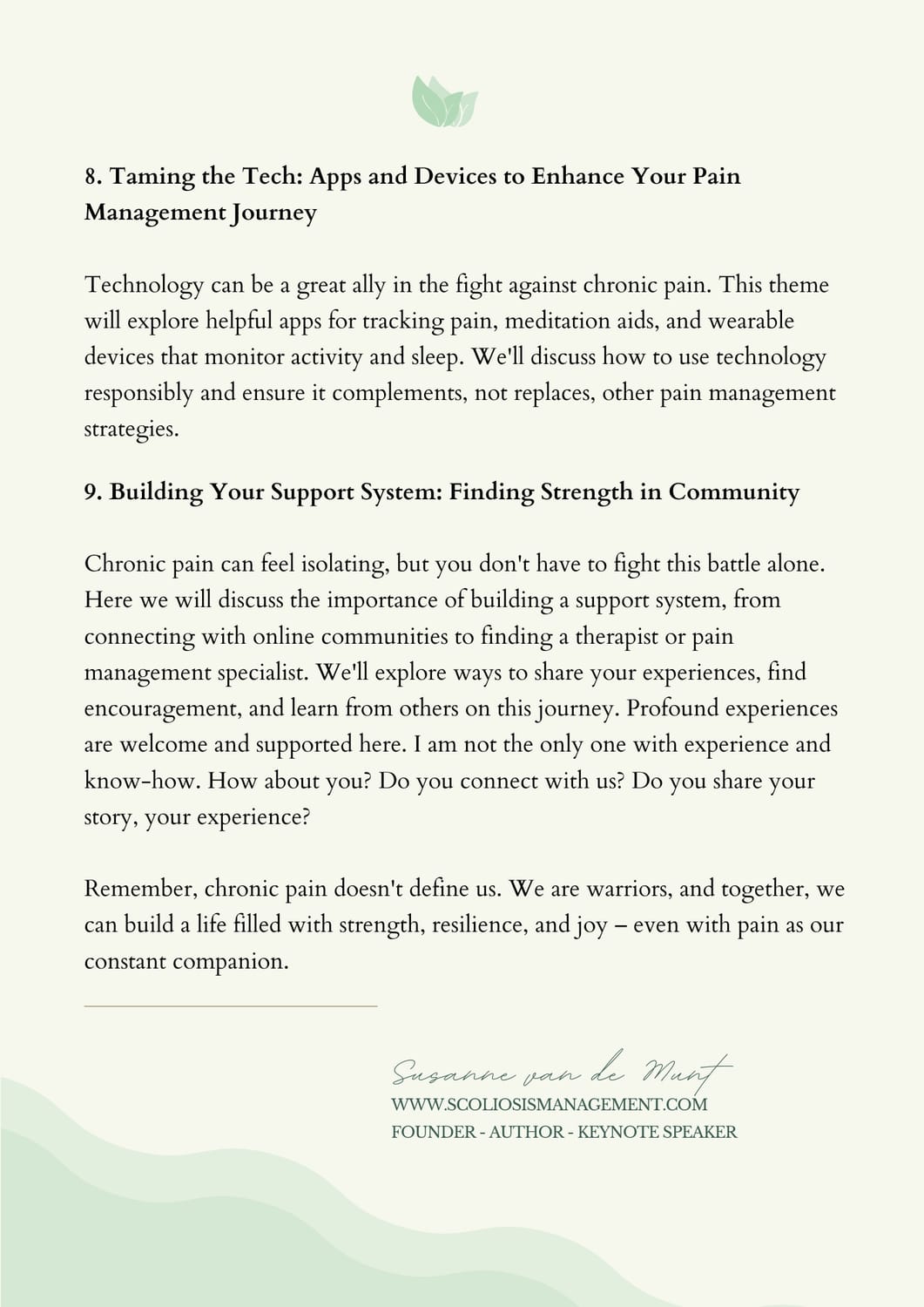 I explore scoliosis, chronic pain, disability, and inclusion through lived experience and neuroscience.